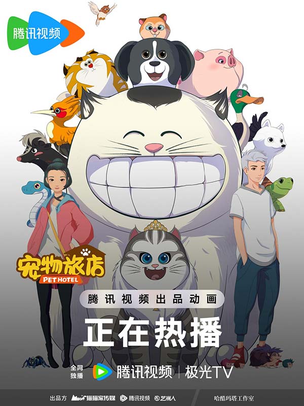 《宠物旅店》是由北京猫猫家文化传媒有限公司、上海腾讯企鹅影视文化传播有限公司、广州艺洲人品牌管理股份有限公司联合出品的动画情景喜剧,2022年2月在腾讯视频少儿频道开播,热度持续走高,圈粉无数。除了收获大量少年儿童粉丝的喜爱,很多成年粉丝也在弹幕及评论中自证身份,相互交流。首播后一年内,这部动画陆续登陆了央视少儿、卡酷少儿、优漫卡通、金鹰卡通等主流少儿和卡通频道,收视率和市场占有率均名列前茅。
