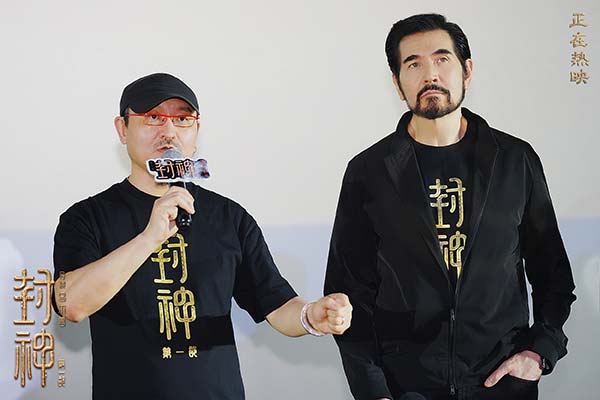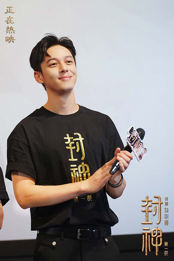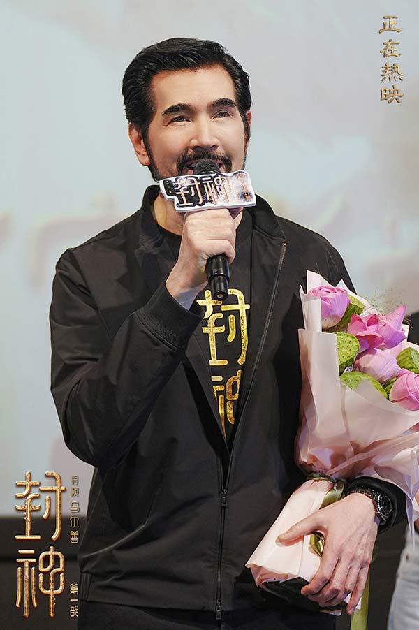 电影《封神第一部》全国巡回礼济南站活动现场,导演乌尔善,主演费翔、陈牧驰、娜然、武亚凡、黄曦彦、单敬尧,戏用道具美术指导赵首艺、声音指导赵楠与观众交流互动。在每位演员在自我介绍的时候,台下观众皆报以热烈掌声,甚至喊出相应角色的台词,不仅让演员们颇为感动,导演乌尔善也感触良多:“《封神第一部》角色非常多,故事也非常密集,每个演员能够在很小的表演空间里给大家留下印象,尤其年轻演员都是第一次演戏,我为他们自豪。”