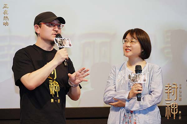 “闻太师回朝”的片尾彩蛋中,闻太师、邓婵玉、魔家四将等新角色登场,令人眼前一亮,很多观众也很好奇他们跟商王殷寿的关系,费翔笑称“闻太师马上就会回来为我报仇了”。他介绍,闻太师是殷寿的长辈,也是他唯一真正怕的人,邓蝉玉是闻太师带回朝歌的,殷寿之前没有见过,但这两个人,他都会好好利用。陈牧驰收到济南观众送的背后印有“闻太师回朝”二创作品的T恤,笑称:“闻太师应该快走到朝歌城的午门口了,然后他就会慢慢发现门口的两只饕餮没了,大司命比干没了,姜王后不见了,太子也被干掉了,进而看到这一切的真相”,也让观众对第二部的剧情更添几分期待。