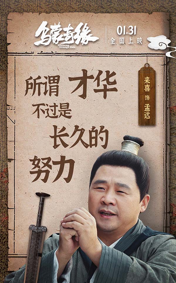 电影《乌蒙奇缘》讲述了矿业工作者孟远意外穿越到古代便被卷入官银被劫案,因而结识了押送官银的李晓雨兄妹,一起历经民间、江湖、庙堂的种种考验、锤炼的故事。今日释出的金句版海报选用古代书页和牌匾元素,高度总结了四位主要角色的故事线和座右铭。来喜饰演的孟远原本是一名普通的矿业工作者,在乌蒙朱提勘测矿洞时误闯古代,成为了一名“穿越者”。虽然身处不属于自己的时代、虽然身无分文,孟远并没有让不堪的现状持续太久,而是通过自己丰富的学识将现代科技与知识运用到古代,例如用沼气做饭、用牛油制成肥皂......孟远带领古代人民持续创造美好生活。而孟远的这些学识,也得益于他在现代社会中长期的学习和积累。熊玉婷饰演的李晓雨是一名受任于朝廷、押送官银的女将军,官银被劫后,她努力配合孟远调查案件始末,在城中水源被奸人下药、瘟疫四起后,李晓雨对百姓说“我们不会放弃任何一个人!”老百姓也在这一承诺下走过了最艰难的时光。吴晴饰演的农家女赵颖,与亲弟弟相依为命,日子过得很苦,却依然乐观向上。赵颖坚信“好日子应该就要到了”。今天比昨天更好,这就是希望,也是生活的意义。李嘉铭饰演的贺千将军,嫉恶如仇、忠贞不二。他跟随大司农走访乡间、全力调查民间非法流通的五铢钱。他手中常执长剑,不放过任何可疑的人,完美践行“护一人更要护百姓,爱长剑更要爱天下”。四位主要角色的正能量金句,恰好代表了四种不同角度的信仰,带我们在艰难的外部环境中开辟出了属于自己的光明大道。由此可见,电影《乌蒙奇缘》不同于一般的爆笑喜剧,于笑声背后隐藏的深邃内核与品质,才是这部奇幻喜剧想要传达的真正内里。