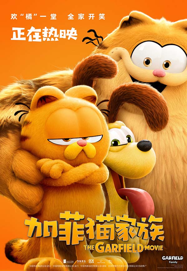 合家欢喜剧动画电影《加菲猫家族》由中国电影集团公司进口,中国电影股份有限公司发行,中国电影股份有限公司译制,北京阿里巴巴影业文化有限公司协助推广。影片正在热映中,欢迎加入这场欢乐的橘色风暴。