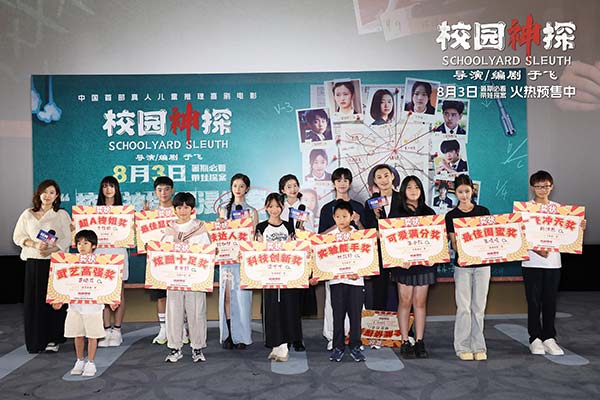 7月28日,中国首部真人儿童推理喜剧电影《校园神探》发布终极预告和终极海报。终极预告中进一步展现了侦探社社长相里思奇调查校园失窃案的探案过程,而终极海报则是社团同学们集结在科技教室,每个人的脸上都充满神秘感,仿佛隐藏着不为人知的秘密,悬疑感十足。影片主创亮相同日举办的北京首映礼现场,与现场观众及嘉宾进行映后互动。电影《校园神探》由于飞担任导演兼编剧,林子烨、洪悦熙、裴佳欣、于书瑶、郭赫轩、庄则熙主演,影片将于8月3日全国上映,预售正在火热进行中,提前购票开启欢乐一夏。