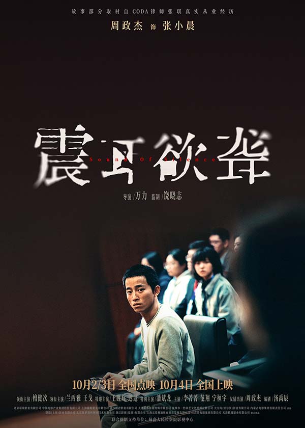 电影《震耳欲聋》由北京联瑞影业有限公司、中国电影产业集团股份有限公司、上海猫眼影业有限公司、浙江横店影业有限公司、天津木木影视传媒有限公司、深圳市一怡以艺文化传媒有限公司、大方向(哈尔滨)影业有限公司、内蒙古电影集团有限责任公司出品,联瑞(上海)影业有限公司、北京微梦创科网络技术有限公司、浙江影视(集团)有限公司、上海五星极加体育娱乐发展有限公司、江苏省电影集团有限公司、天津联瑞影业有限公司联合出品,最高人民检察院影视中心联合摄制,万力执导,饶晓志监制,檀健次领衔主演,兰西雅、王戈领衔主演,王砚辉、迟蓬特邀主演,潘斌龙特别主演,李菁菁、范翔、宁桓宇主演,周政杰友情出演,汤禹辰编剧,将于10月2日/3日进行全国点映,10月4日全国上映,敬请期待!