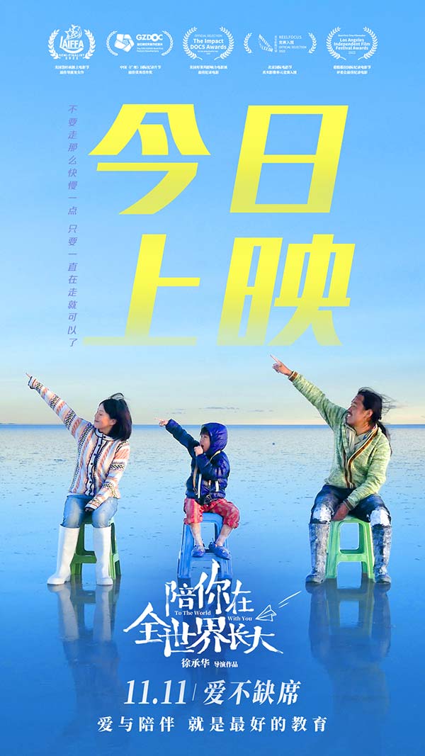 由徐承华(又名老极)导演,陆凤霞、胡静、张聪洋出品的亲子电影《陪你在全世界长大》今日正式登陆全国各大院线。影片聚焦亲子关系,讲述一对非典型父母陪伴孩子环游世界,在漫漫长路上实践“读万卷书,行万里路”的新式教育观念的温情成长故事,以过硬的质量、惊艳的视效、走心的情怀,带给观众一次环球“云旅游”、一场视觉上的盛宴、一堂教育的必修课。目前,影片正在热映中,一起相约影院,开启全新的冒险之旅。