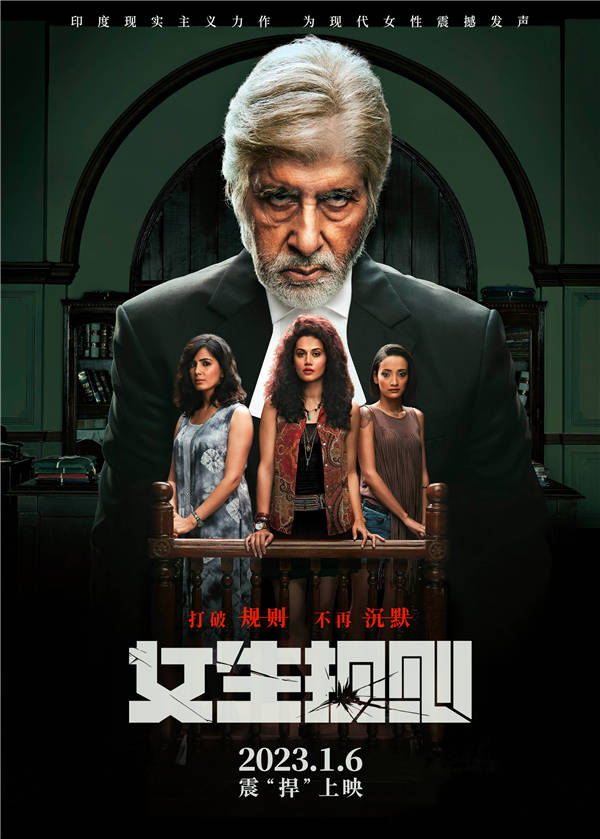 电影《女生规则》定档海报中,“女生规则”四个大字破损裂开,喻示着传统社会要求女生必须遵守的规则需要被打破!海报上,三位女生相伴站在原告席,原本是受害者的女孩却反被诬告成勾引男生、实施暴力的罪犯。面对无处不在的指责,她们眼神无辜却依旧坚定。而伫立在她们背后的则是一名顶尖律师,当一条条咄咄逼人的“规则”宣告着女孩们的“不清白”,他将用一场极致法庭辩论撕破印度社会黑暗面,挑战束缚现代女性的传统偏见,为女孩们震撼发声。观念交锋,一触即发!