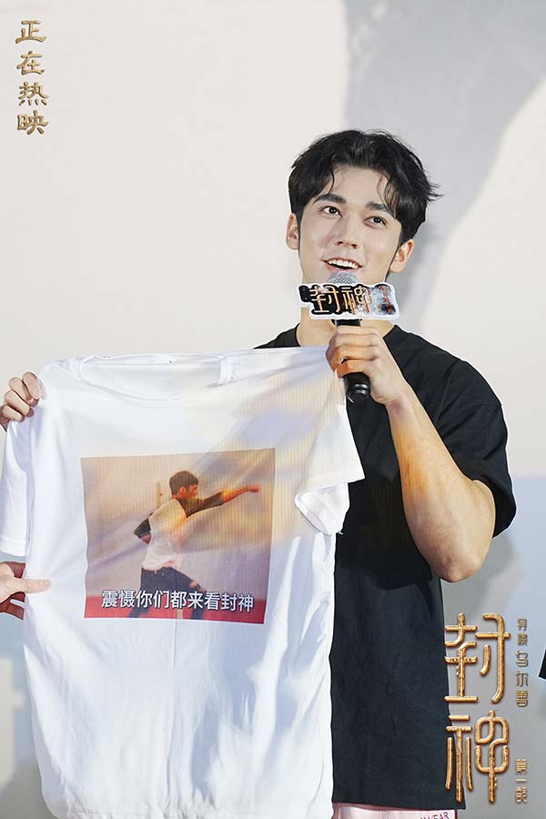 电影《封神第一部》全国巡回礼济南站活动现场,导演乌尔善,主演费翔、陈牧驰、娜然、武亚凡、黄曦彦、单敬尧,戏用道具美术指导赵首艺、声音指导赵楠与观众交流互动。在每位演员在自我介绍的时候,台下观众皆报以热烈掌声,甚至喊出相应角色的台词,不仅让演员们颇为感动,导演乌尔善也感触良多:“《封神第一部》角色非常多,故事也非常密集,每个演员能够在很小的表演空间里给大家留下印象,尤其年轻演员都是第一次演戏,我为他们自豪。”