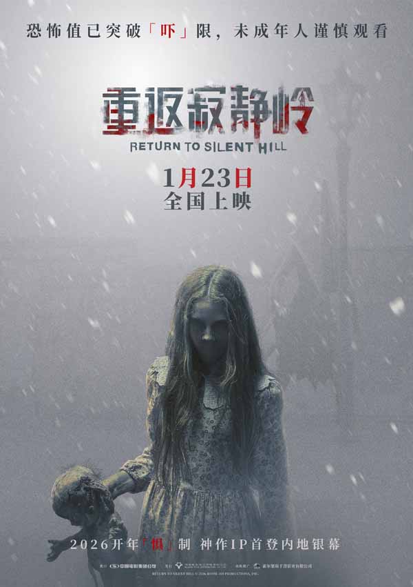 改编自经典惊悚游戏IP的电影《重返寂静岭》于今日正式开启预售,并同步曝光“欢迎光临”版特别视频及“沉默面「恐」”版海报。特别视频以旅游宣传片的形式将寂静岭打造为“2026小众宝藏打卡地”,不仅重新定义“5A景区”概念,还将网友的梗巧妙融入宣传语中,一本正经的“抽象反差感”引起了观众的热烈讨论。影片将于1月23日同步北美上映。